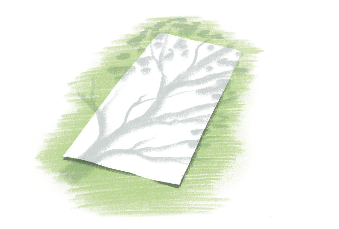 Find a small tree, a bush, a flower or a stick that is casting a shadow and lay a piece of white paper down on the ground or on your lap so that the shadow is lying fully on the paper. Now draw around the edges of the shadow, examining its nooks and crannies, and making sure to trace every detail.