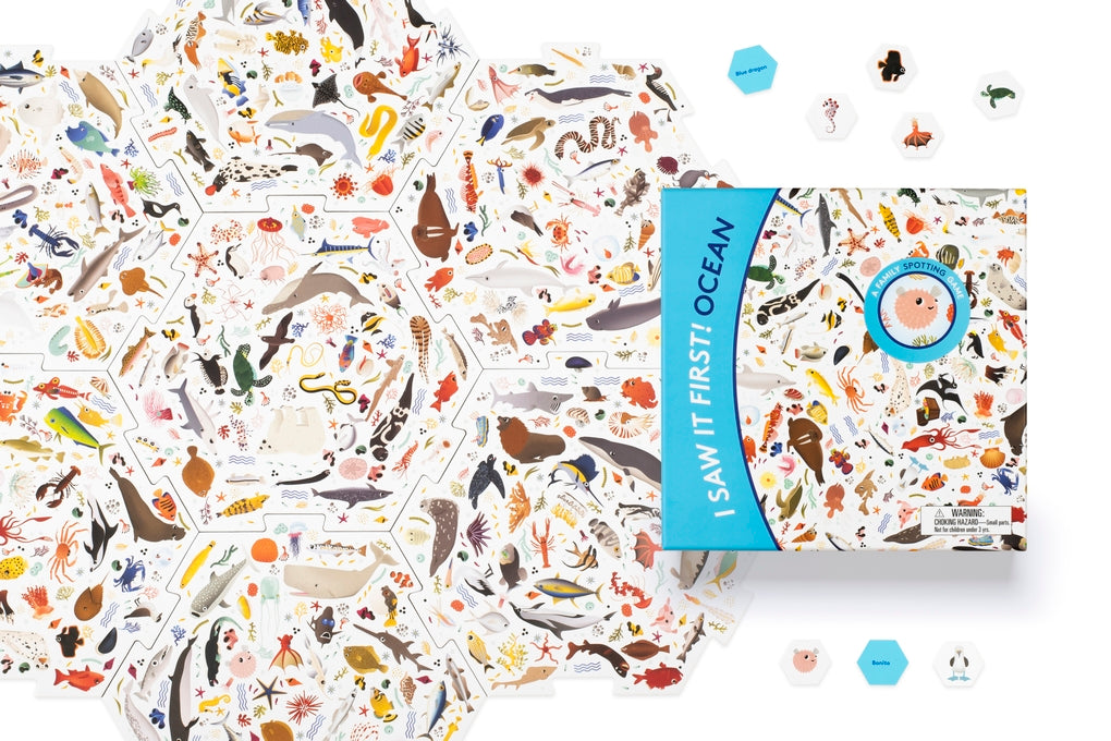 Now in a square box, I Saw it First! Ocean includes a double-sided hexagonal board and 300 counters with charming animal illustrations by Caroline Selmes. Simple to understand and addictive to play, this fun and challenging game will delight adults and children alike.
